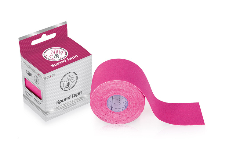 Taśma kinezjologiczna Speed Tape Economic bawełniana w kolorze różowym jest idealnym rozwiązaniem przy stłuczeniach, drobnych obrażeniach i urazach. Usprawnia przepływ limfy oraz zmniejsza obrzęk, odciążając tym samym podrażnione nerwy prowokujące ból.